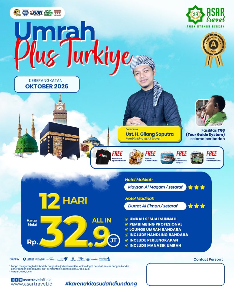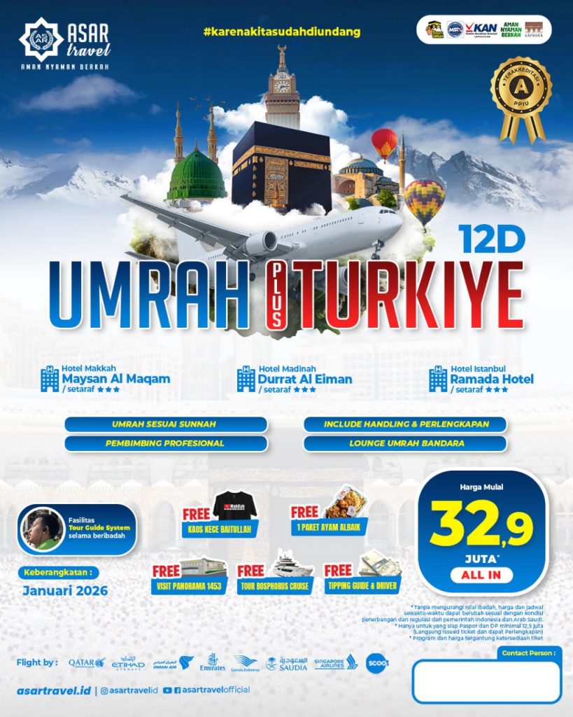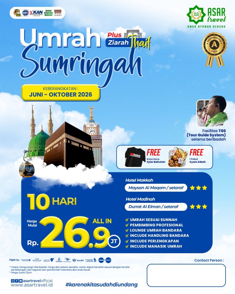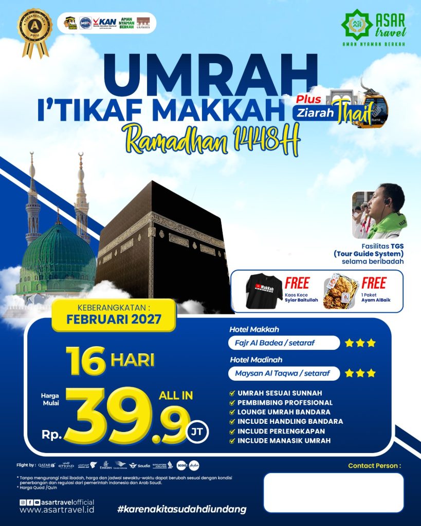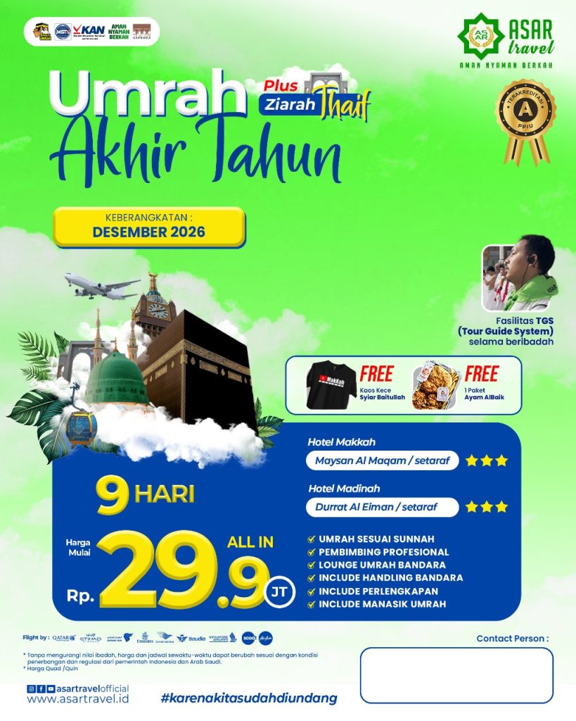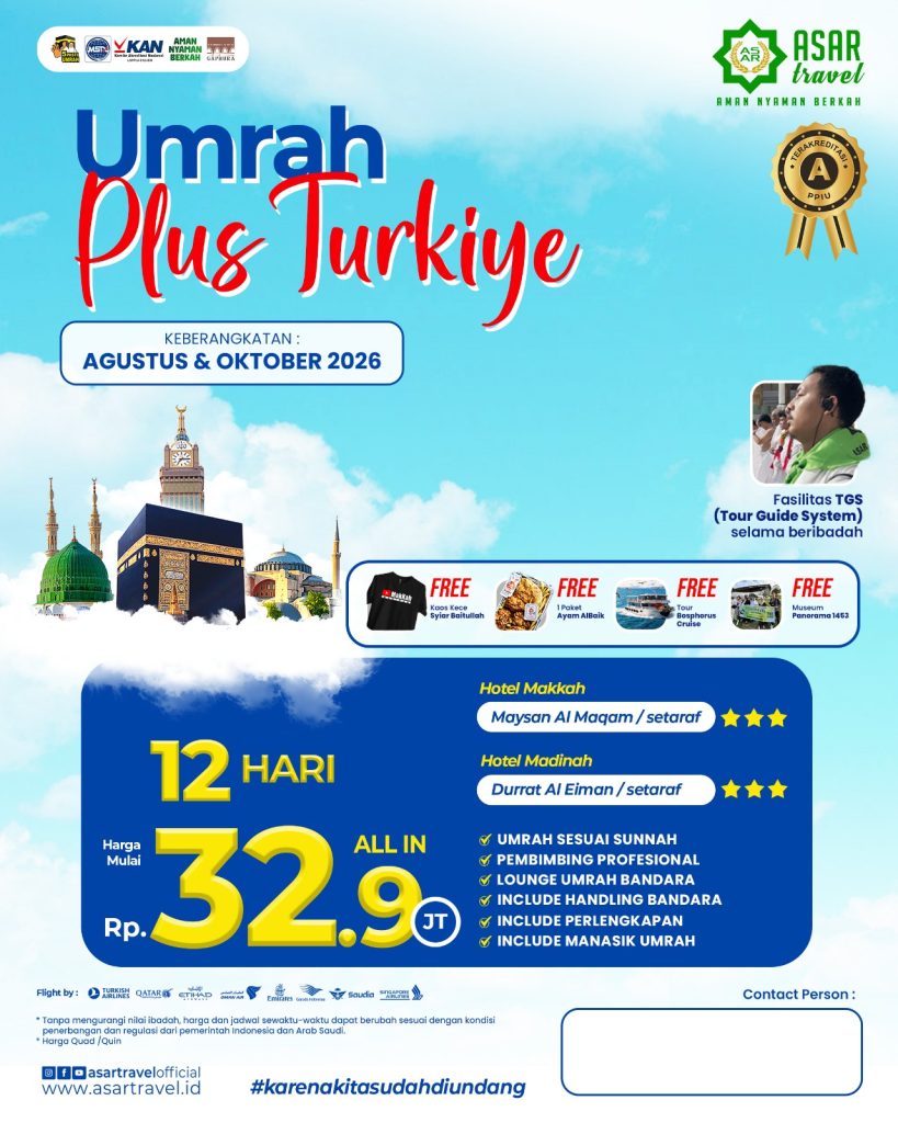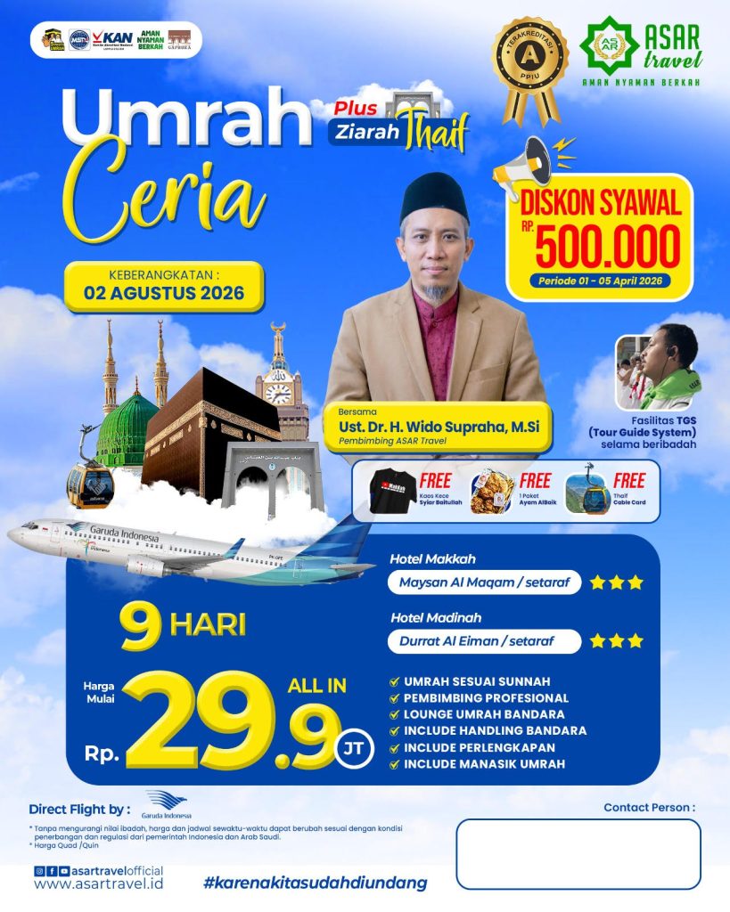 ASAR Travel berijin resmi PPIU no U.445/2021. Dengan nilai A pada akreditasi PPIU yang dilakukan oleh Lembaga KAN. Menempati Gedung milik sendiri. Tiket dan visa akan dibagikan di grup jamaah sebelum keberangkatan.